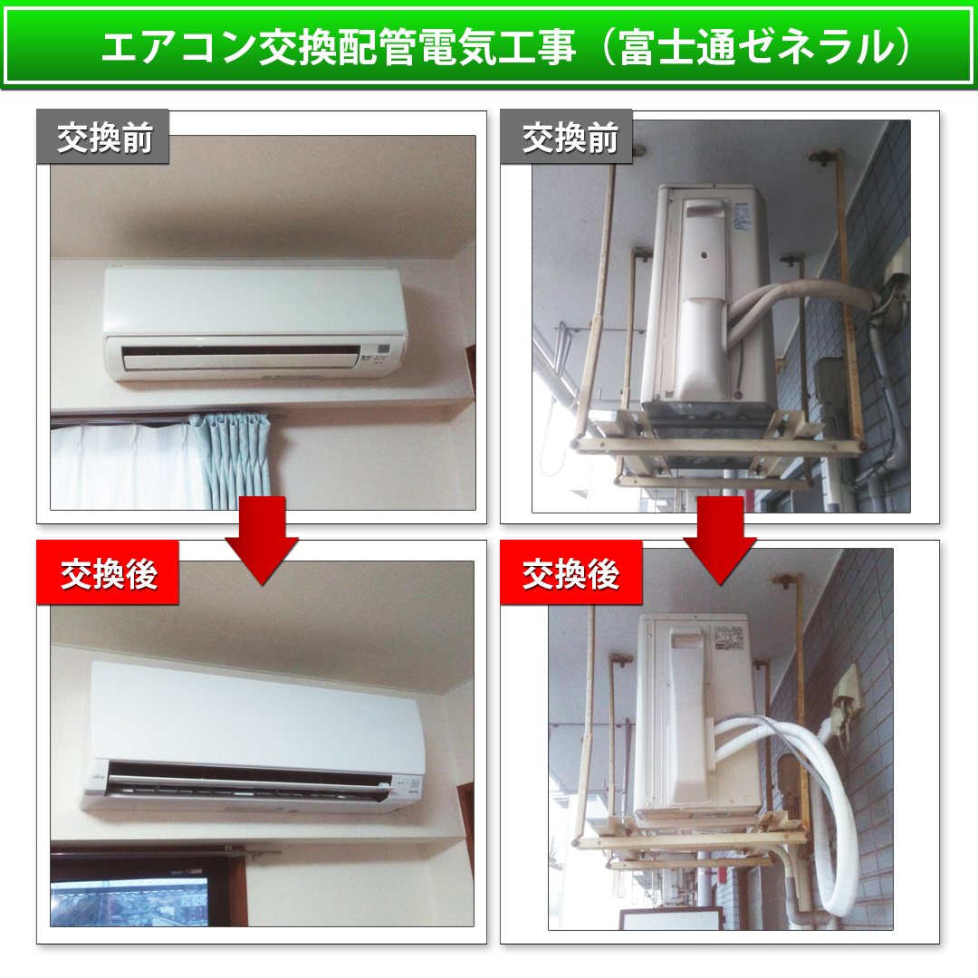 エアコン交換配管電気工事(富士通ゼネラルAS-AH362M-W)