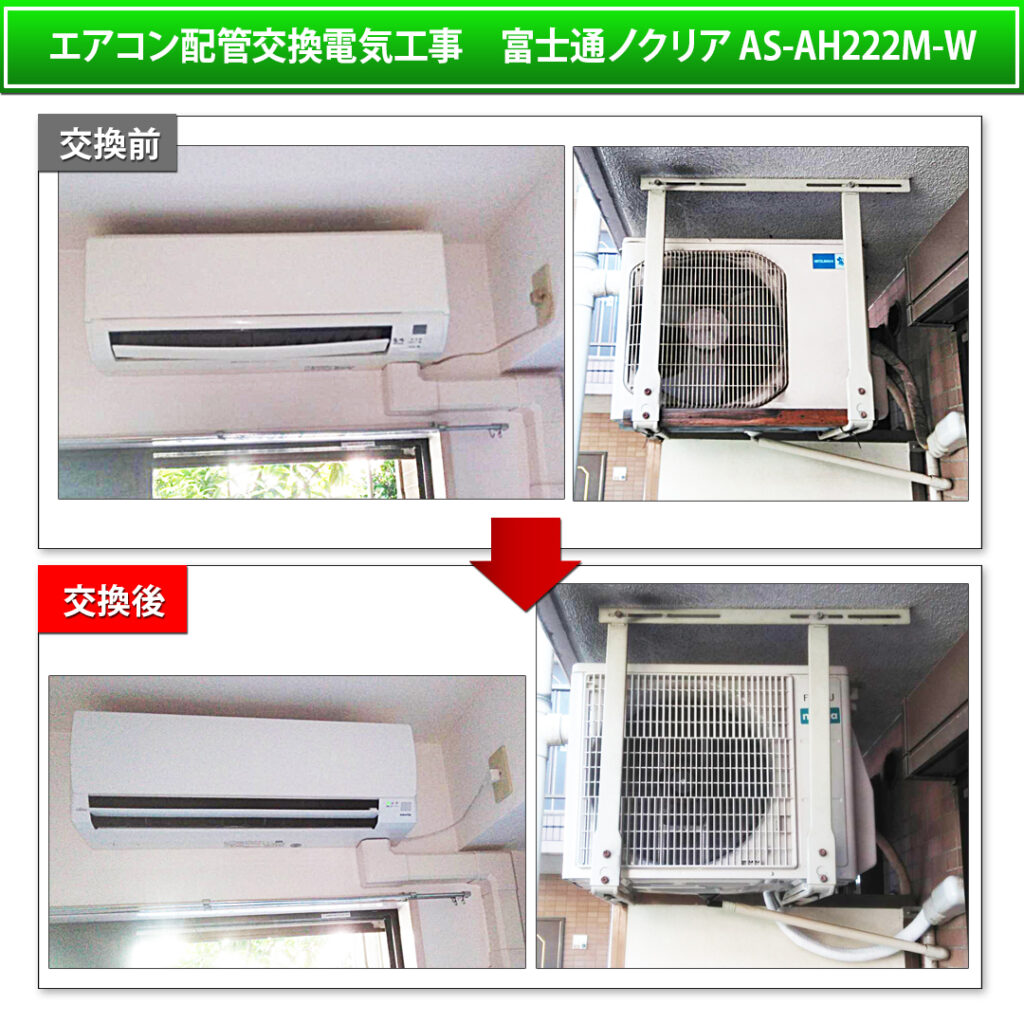 エアコン配管交換電気工事 富士通ノクリアAS-AH222M-W