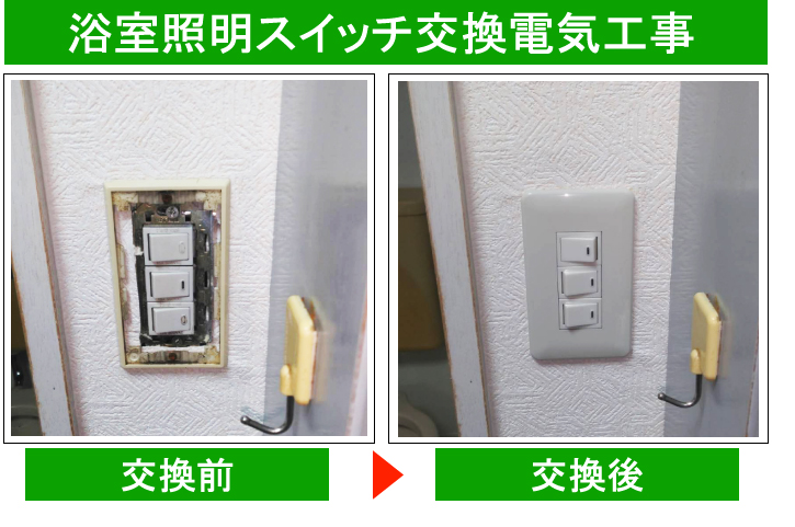 今回は浴室照明スイッチを電気工事で交換工事を行いました。