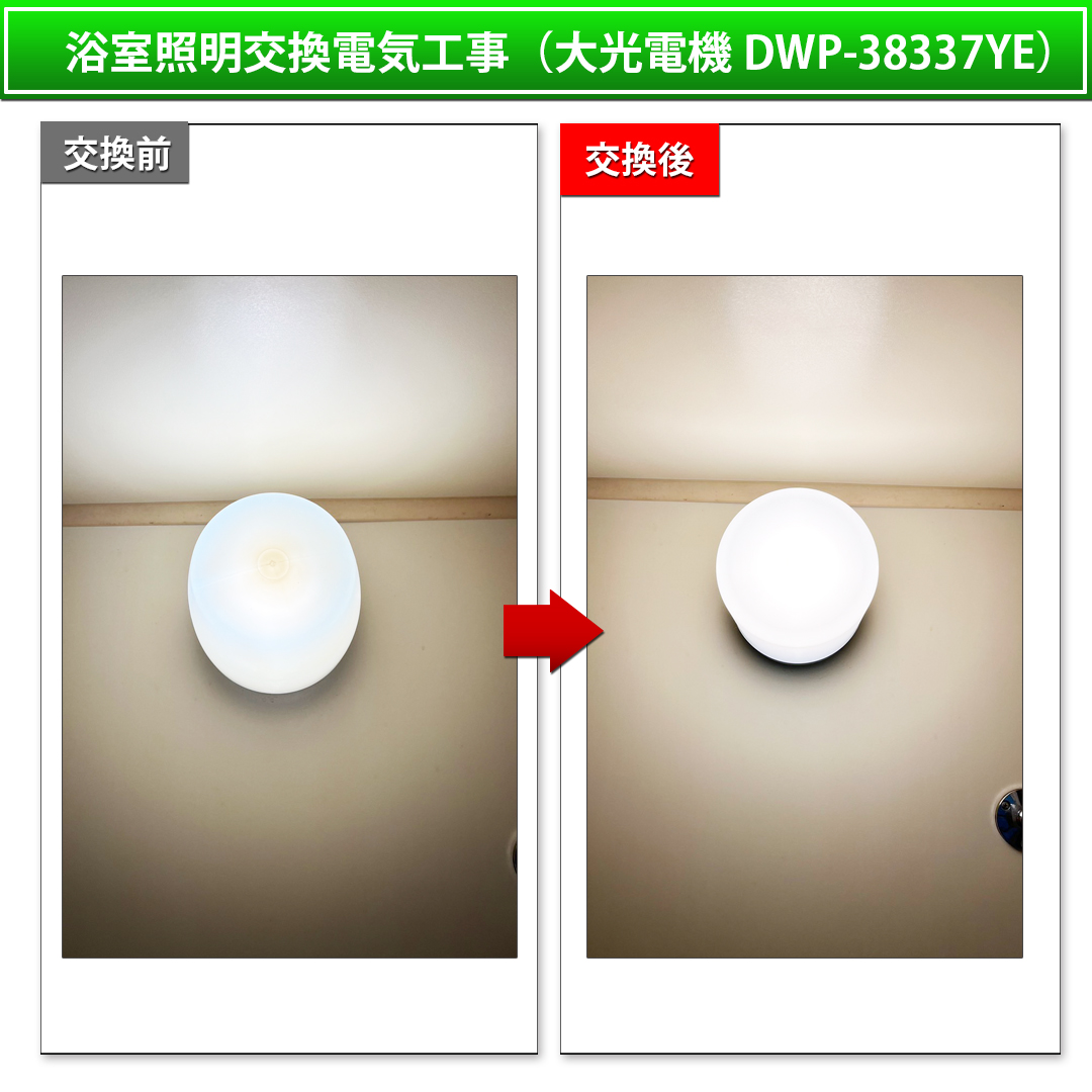 浴室照明交換電気工事 大光電機(DAIKO)LED浴室灯 DWP-38337YE